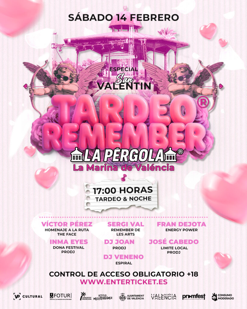 El próximo sábado 14 de febrero, La Pérgola de la Marina de València acogerá una edición muy especial del Tardeo Remember®, coincidiendo con el Día de San Valentín. Un evento pensado para cantar, bailar y disfrutar sin interrupciones de la mejor música remember de los años 90 y 2000, junto al mar (La Banda Sonora de tu vida).